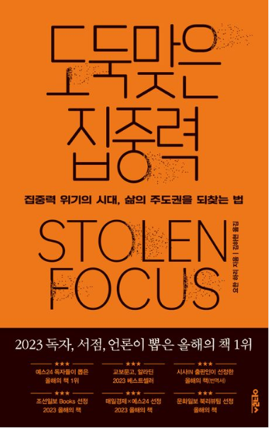 *도둑맞은 집중력*은 현대인이 겪는 산만함과 주의력 저하의 원인을 날카롭게 해부하며, 지금 우리가 겪고 있는 문제는 단지 개인의 게으름이 아닌 현대 문명의 시스템적 결과임을 분명히 보여주는 책입니다.