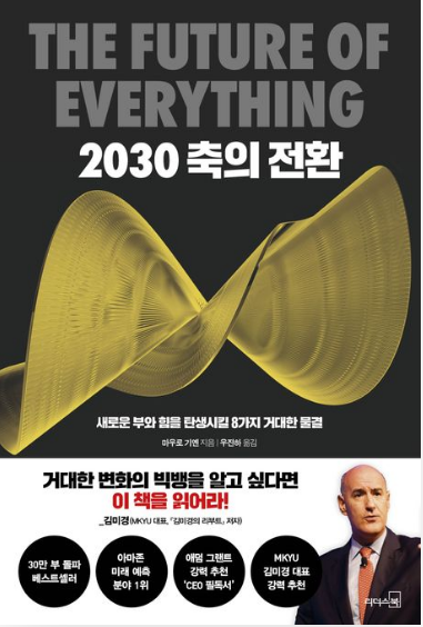 *2030 축의 전환*은 세계적인 미래학자이자 펜실베이니아대학교 와튼스쿨 교수인 마우로 기옌(Mauro F. Guillén)이 집필한 미래 전망서로, 다가올 2030년을 기점으로 전 세계적으로 일어날 경제, 사회, 기술, 인구 구조의 변화에 대해 심층적으로 분석한 책입니다. 그는 미래를 예측하는 가장 확실한 방법은 지금 일어나고 있는 ‘지속적인 변화’를 관찰하고 연결하는 것이라며, 기존의 틀을 벗어나야만 새로운 기회를 잡을 수 있다고 강조합니다. 이 책은 변화의 물결 속에서 개인과 기업, 사회가 어떤 준비를 해야 할지 통찰력 있는 방향을 제시해 줍니다.